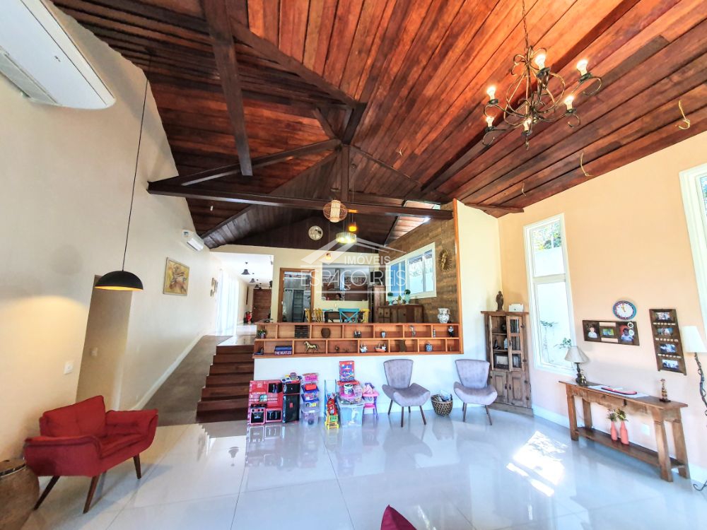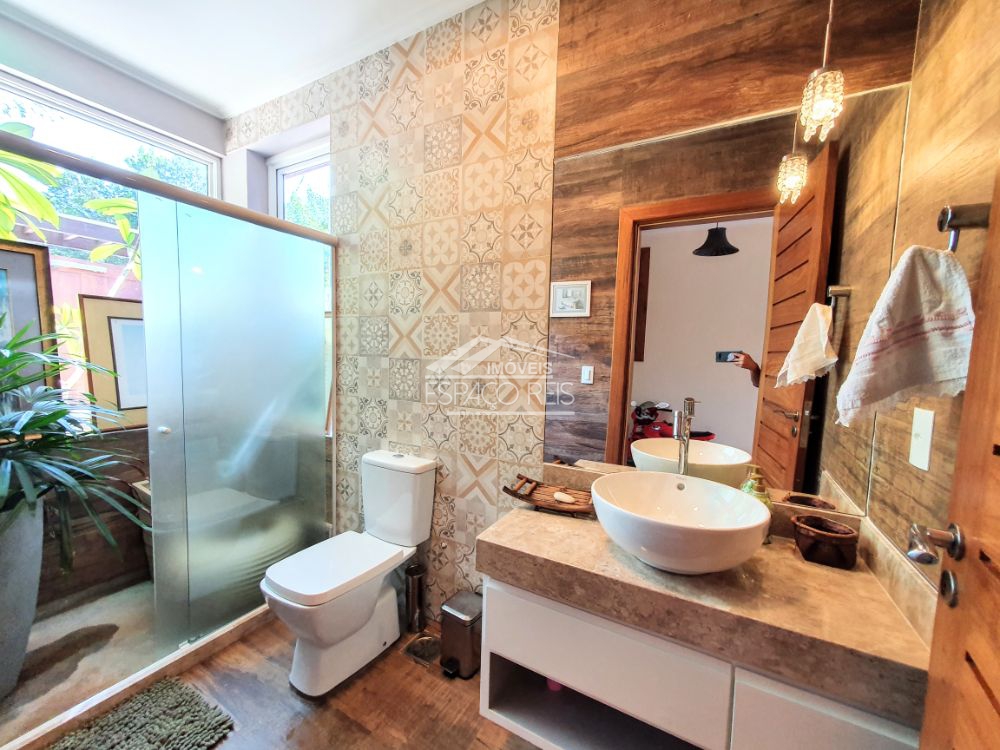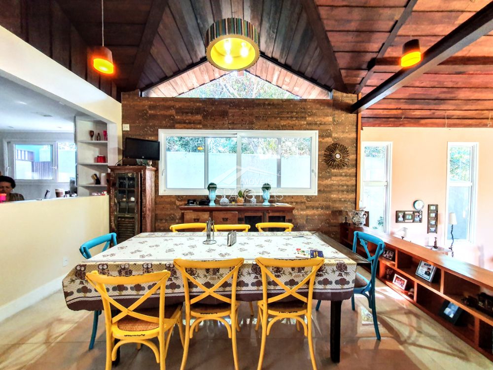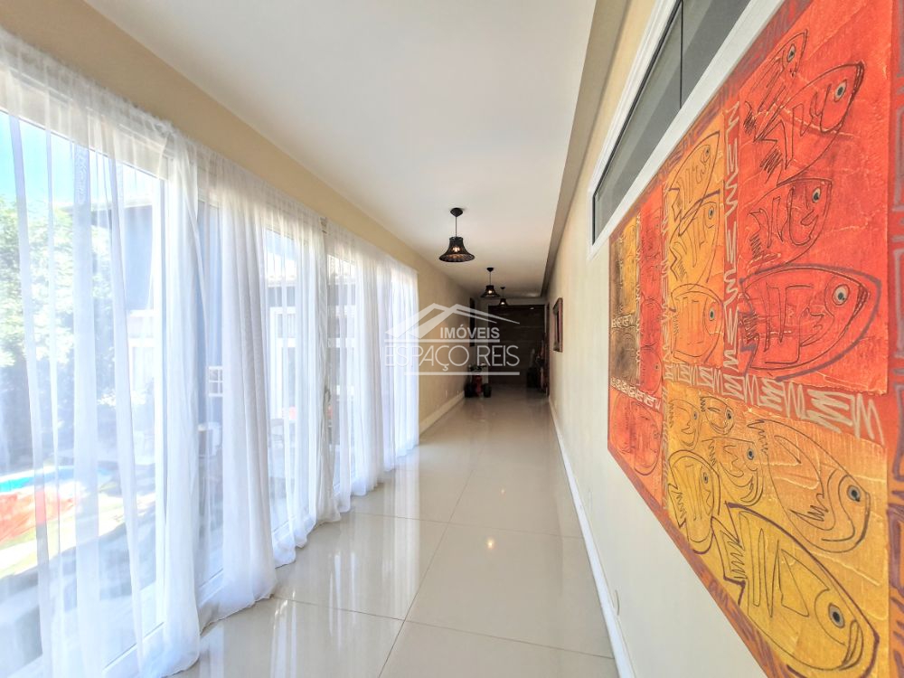 Excelente duplex na ferradura, com terreno de 1.460m e 363m de área construída, o imóvel todo em porcelanato, conta com um salão com pé direito duplo podendo ser dividido em dois ambientes, com janelas e portas de vidro em toda a casa proporcionando muita luz e integração com o jardim. Na frente da sala de estar existe um terraço para apreciar o jardim. Ainda conta com sala de jantar em um patamar mais alto, integrado com ampla cozinha gourmet composta com armários planejados e despensa. Possui 4 suítes, sendo uma master e uma dupla com mezanino. O terreno tem duas entradas de garagem, rodeado de muito verde e privacidade. Ainda área de serviço e canil.