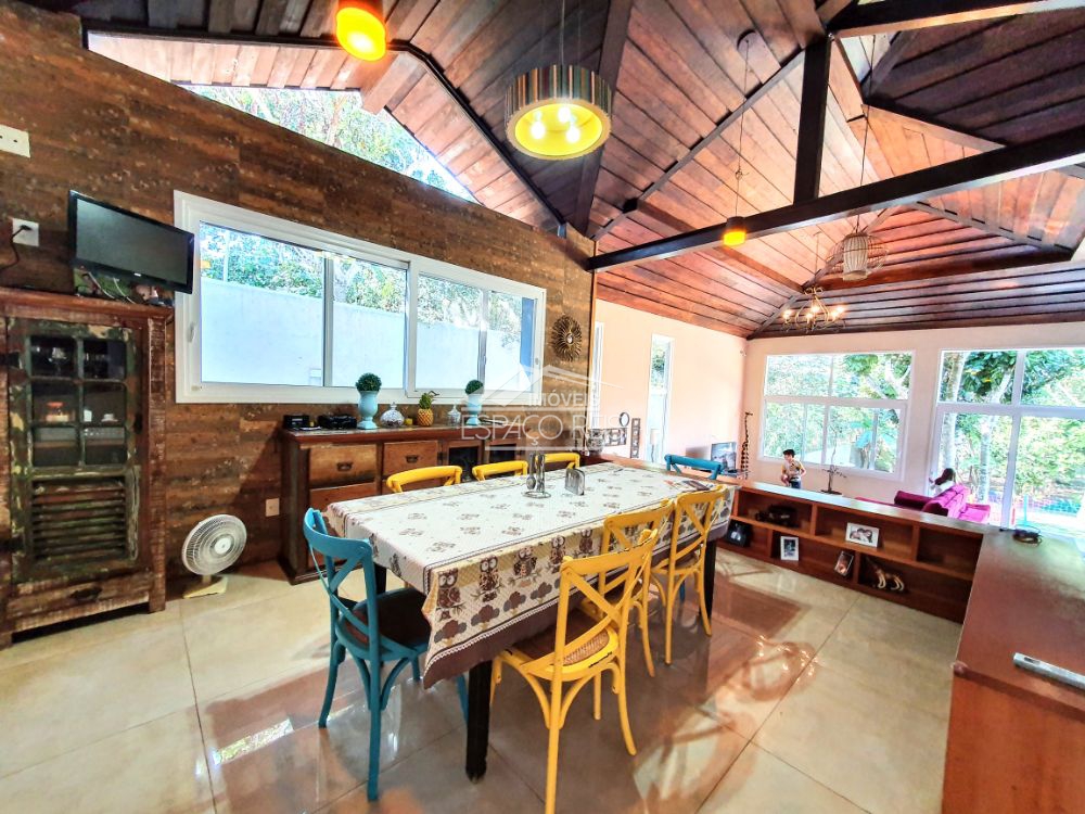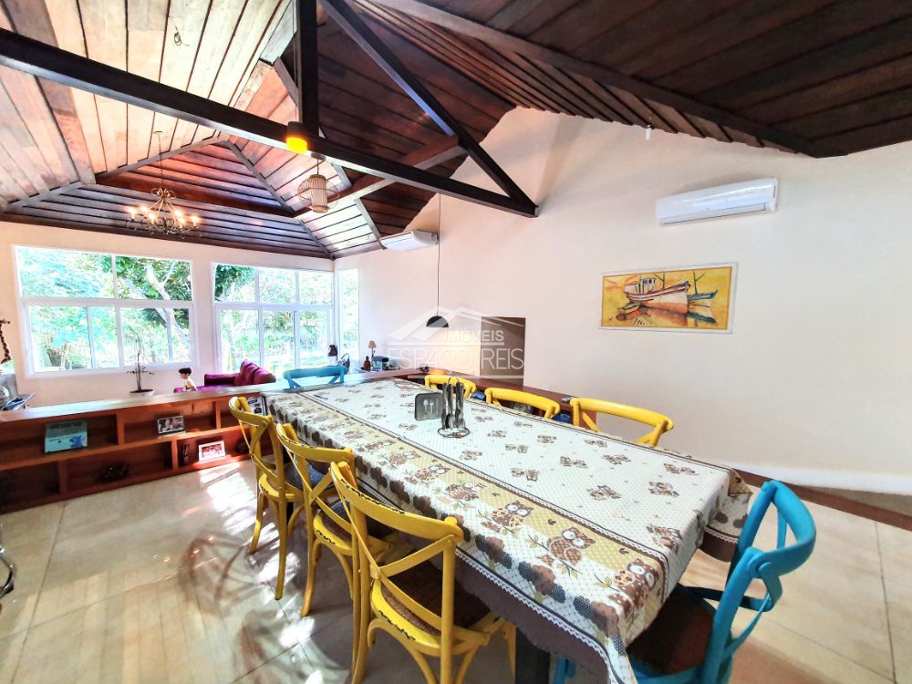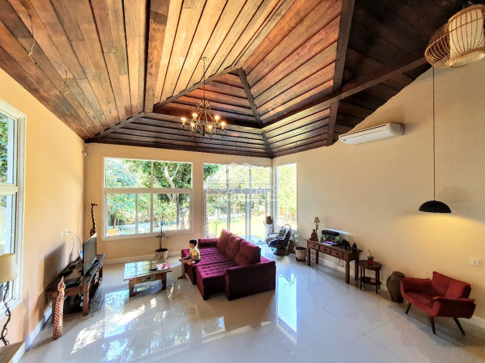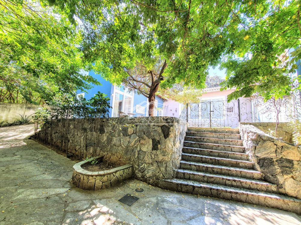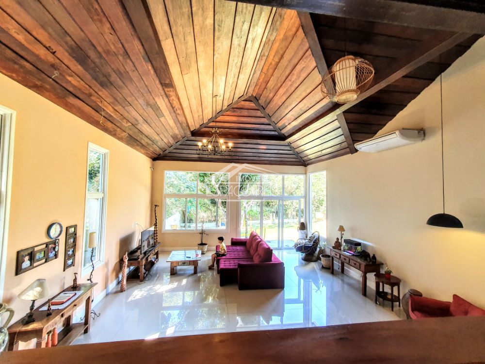 Excelente duplex na ferradura, com terreno de 1.460m e 363m de área construída, o imóvel todo em porcelanato, conta com um salão com pé direito duplo podendo ser dividido em dois ambientes, com janelas e portas de vidro em toda a casa proporcionando muita luz e integração com o jardim. Na frente da sala de estar existe um terraço para apreciar o jardim. Ainda conta com sala de jantar em um patamar mais alto, integrado com ampla cozinha gourmet composta com armários planejados e despensa. Possui 4 suítes, sendo uma master e uma dupla com mezanino. O terreno tem duas entradas de garagem, rodeado de muito verde e privacidade. Ainda área de serviço e canil.